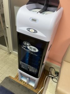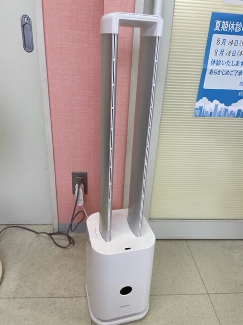 感染対策として、待合室に空気清浄ツインエアーファンを設置致しました。優しい風で空気をしっかり清浄してくれます。