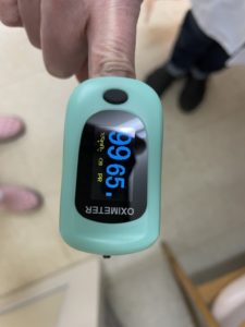 換気の具合などを可視化した機械です。表示されている数字が低いほどよく換気されてる証拠です。